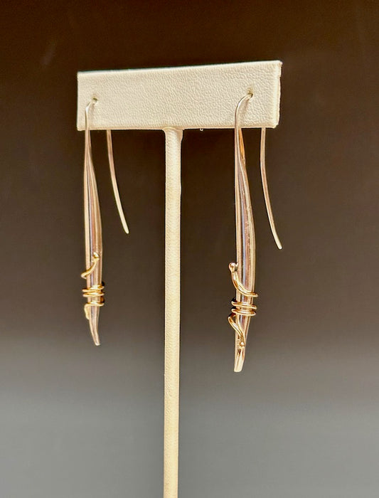 STERLING SILVER PEA. POD EARRINGS WITH 14K WRAP MB168E
