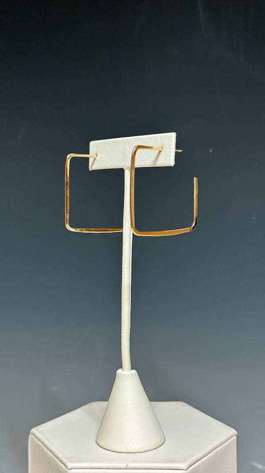 14K GOLD SQUARE FORGED HOOP EARRINGS WITH POSTS MB175E