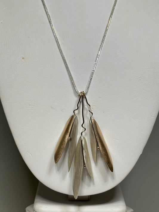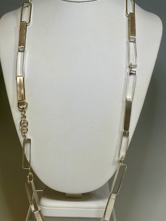 LONG STERLING SILVER AND 14K GOLD RECTANGLE NECKLACE MB160N