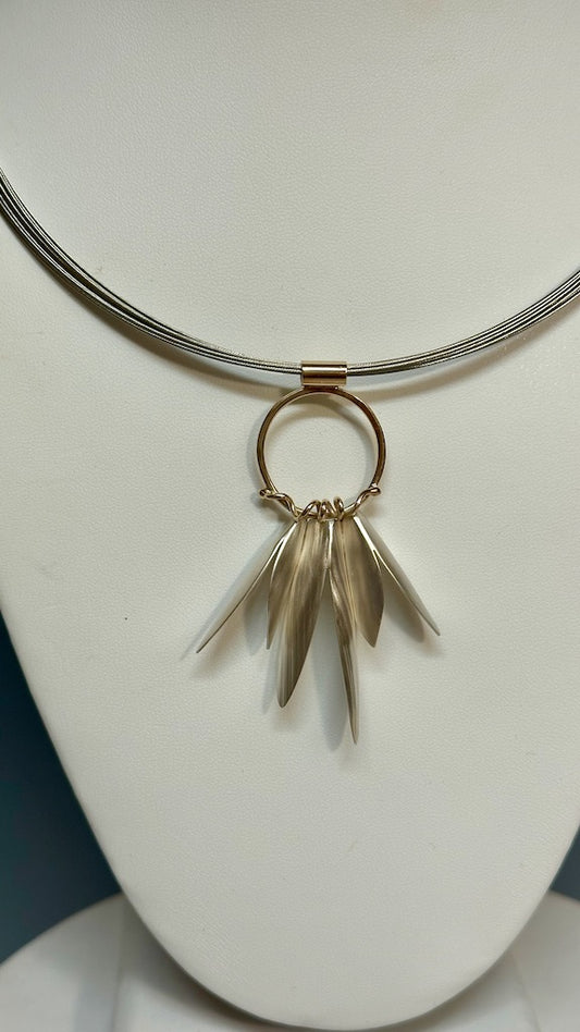 14K with Sterling Silver Wing Necklace with 10 strand stainless steel cable neck wire MB166N