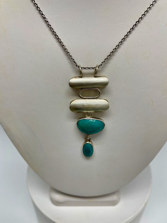 Turquoise and Sterling Silver Pendant with Sterling Silver Chain MB101N