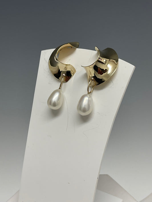 14k Gold and Sterling Silver Neck Wire with Pearl and Green Topaz MB107N