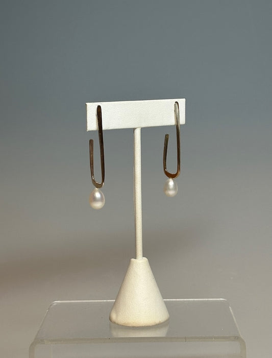 14K RECTANGLE HOOP WITH PEARL EARRINGS MB196