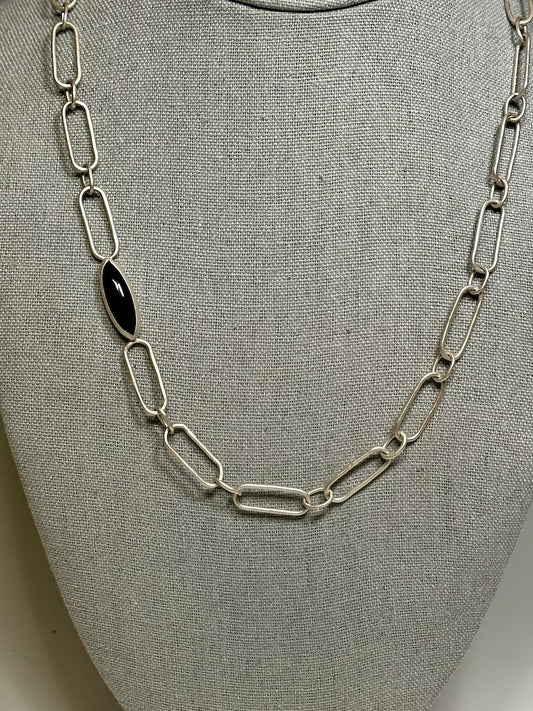 STERLING SILVER CHAIN NECKLACE WITH BLACK ONYX MB197N