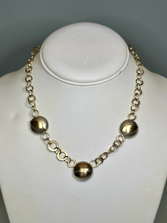 STERLING SILVER AND 14K HOLLOW FORM BEAD NECKLACE WITH HANDMADE GOLD CHAIN MB199