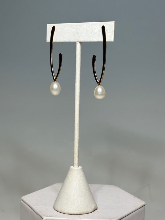 14K FORGED V SHAPE POST EARRINGS WITH PEARL MB204