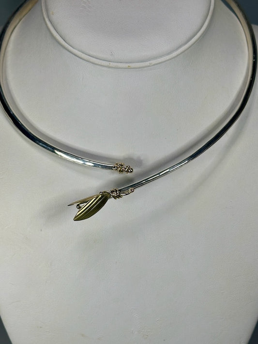 STERLING SILVER FLEXIBLE CHOKER NECKLACE WITH 14K GOLD ACCENTS MB206N