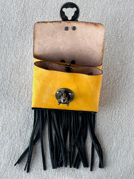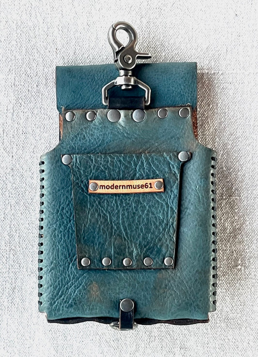 Drawing on her decades of experience as a fashion designer, art director, and visual manager, R. Melinda Hoffman crafts works that explore the intersection of identity, memory, and material culture. Using mixed media, leather, and modern anthropological artifacts sourced from Resourceful, Santa Fe, Capital Scrap, and ReStore, Hoffman creates sculptural adornments, symbolic amulets, and imaginative accoutrements that highlight the stories of obsolete, discarded objects. Her off-the-grid home between Cerrillos and Madrid, NM, doubles as her studio, where she creates works that straddle the line between functional fashion and statement accessories.