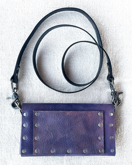 PURPLE LEATHER RENEGADE PURSE WITH ANTIQUE NICKEL PADLOCK CLASP MMRP2