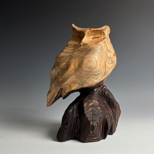 "SUNLIT WHISPER" WHITE PINE AND GRAPHITE WOOD SCULPTURE