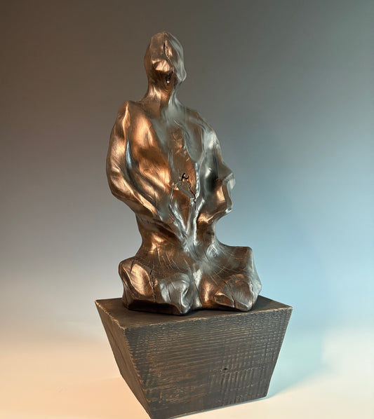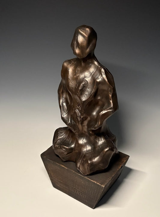 "SOLITUDE" WHITE PINE, GRAPHITE AND LEYLAND CYPRESS WOOD SCULPTURE