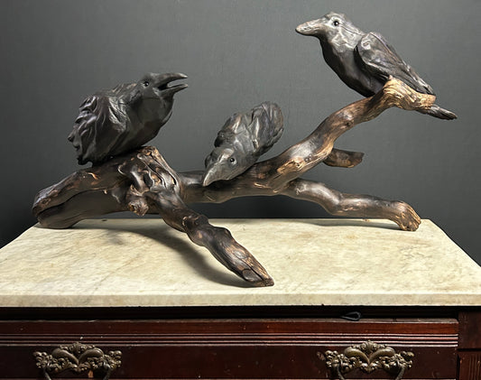 "OLD FRIENDS" SOURWOOD AND CORKSCREW HAZEL WOOD SCULPTURE