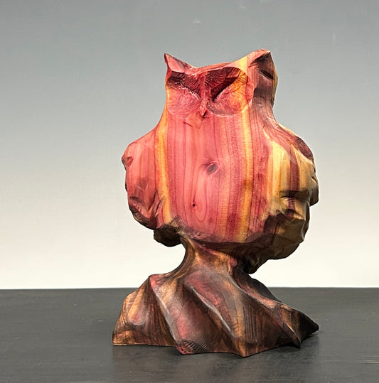 "CHERRY OWL" HAND CARVED WOOD SCULPTURE