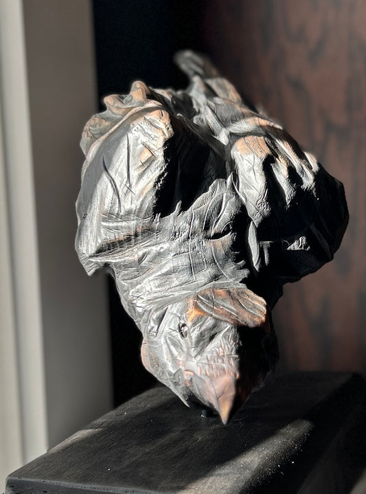 "FEARLESS" HAND CARVED WOOD SCULPTURE