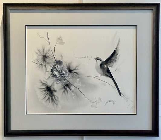 "BLACK AND WHITE BIRD" Original Watercolor/Framed