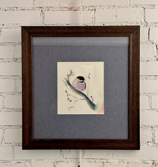 "SMALL BLACK CAPPED CHICKADEE " Original Watercolor/Framed