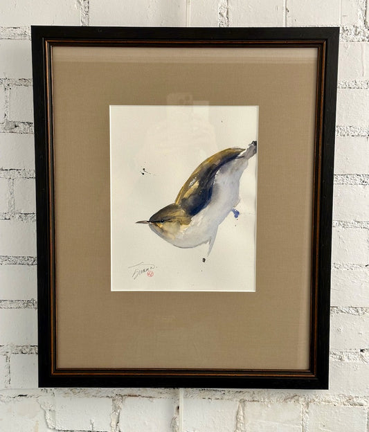 "NUT HATCH WITH TAN SILK MAT" Original Watercolor/Framed