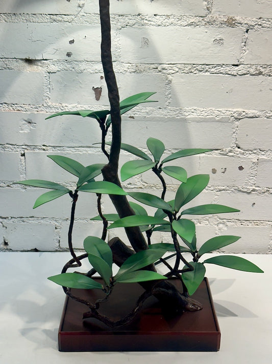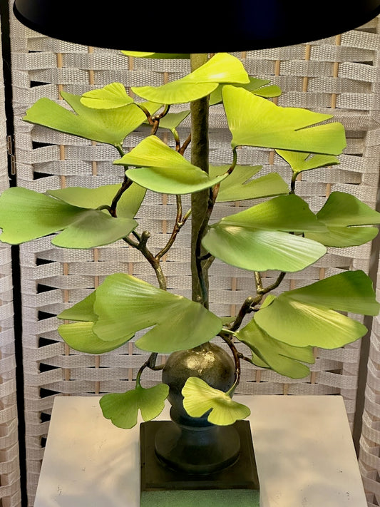 GREEN GINKGO HAND FORGED METAL LAMP WITH BLACK SHADE