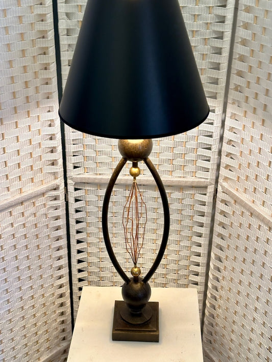 TESLA INSPIRED HAND FORGED METAL TABLE LAMP WITH BLACK SHADE