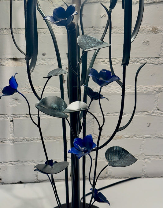 BLUE 5 PETAL WILDFLOWER FIELD STUDY HAND FORGED METAL LAMP