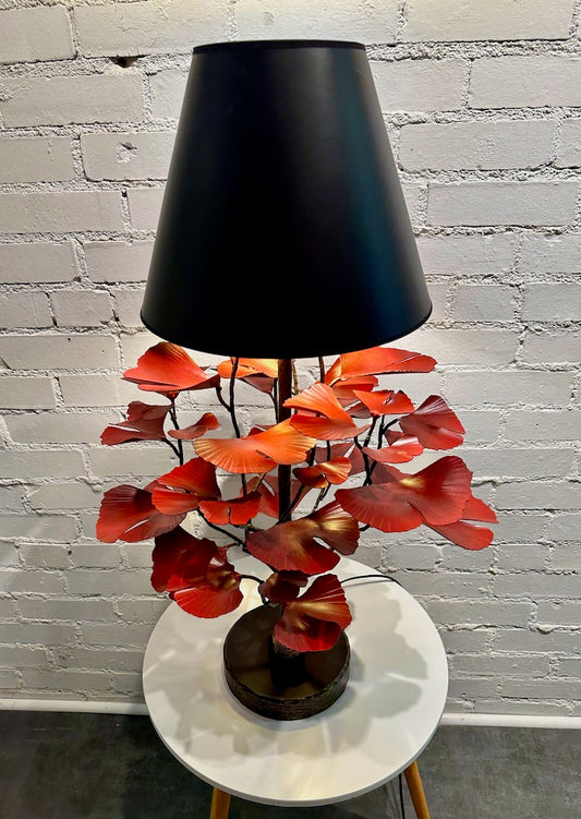 Red Ginkgo Lamp Table Lamp with Black Shade