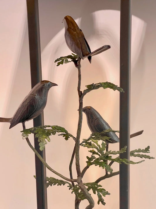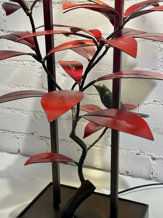 WREN AND BAMBOO LEAF Table Lamp with Black Shade