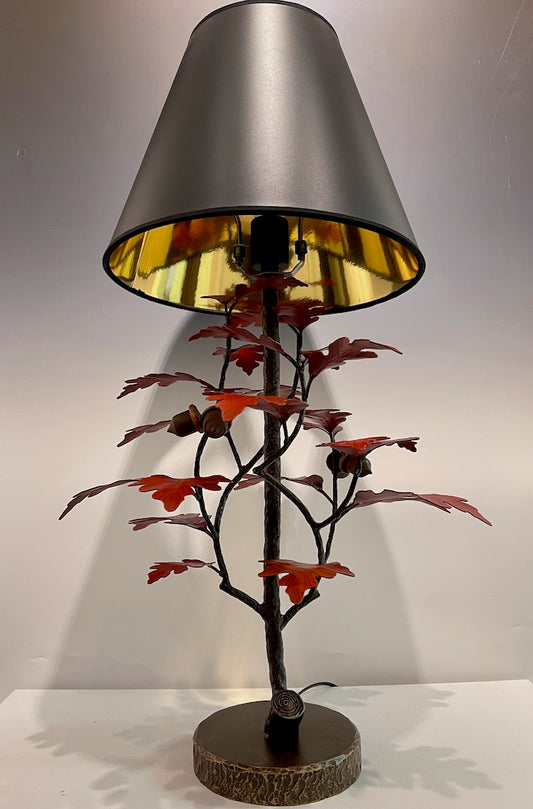 Red Oak and Acorn Table Lamp with Black Shade