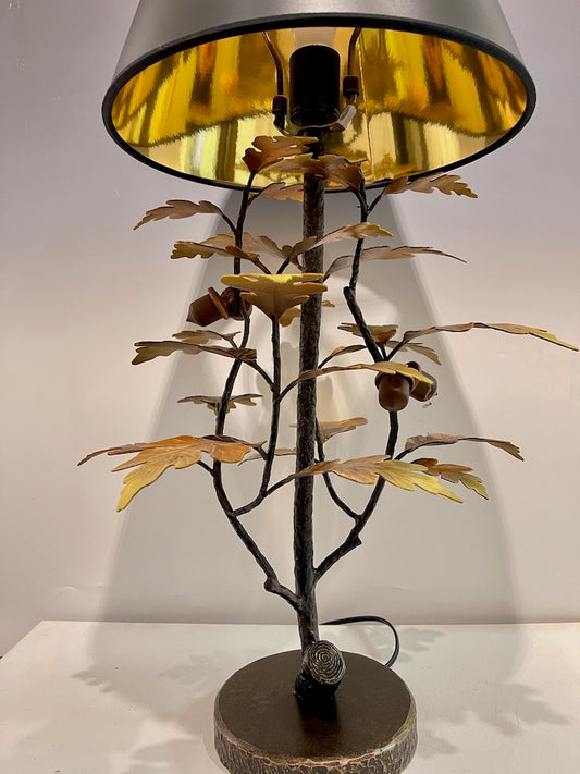 Yellow Oak and Acorn Table Lamp with Black Shade