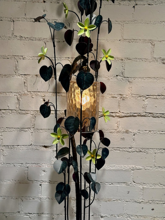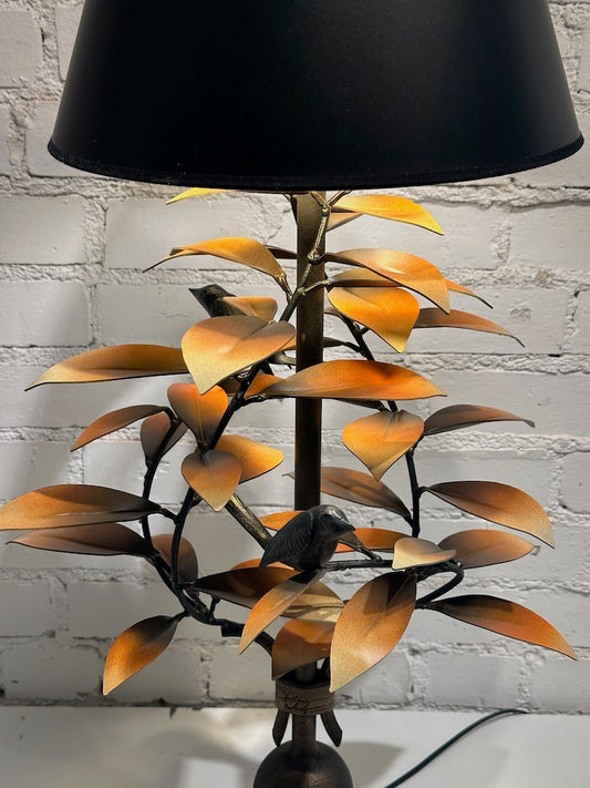 ORANGE/BROWN LAUREL AND WREN HAND FORGED METAL LAMP