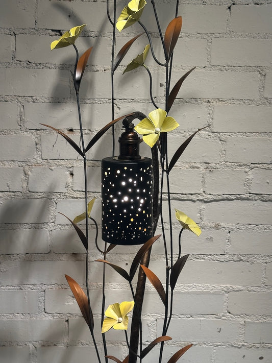 YELLOW BLOOM FIELD STUDY LAMP WITH PUNCH OUT METAL SHADE