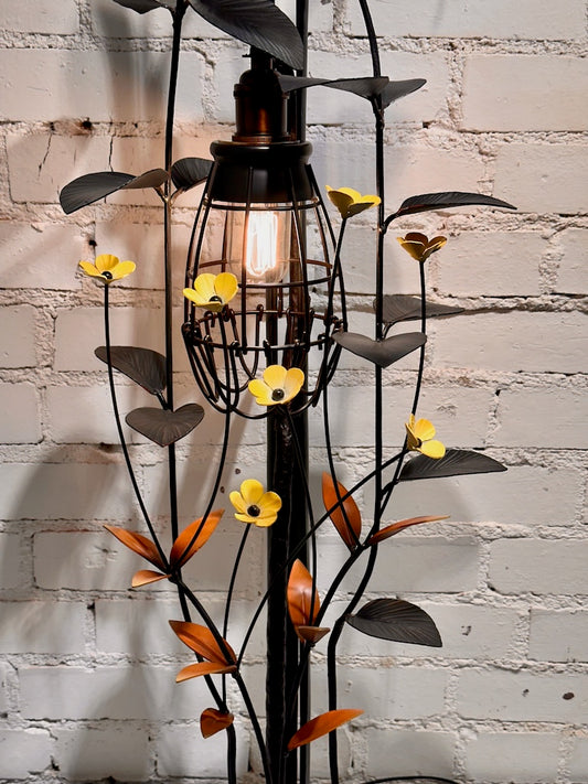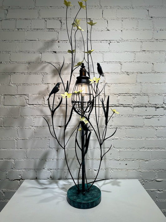 YELLOW/ORANGE LAUREL AND WREN HAND FORGED LAMP
