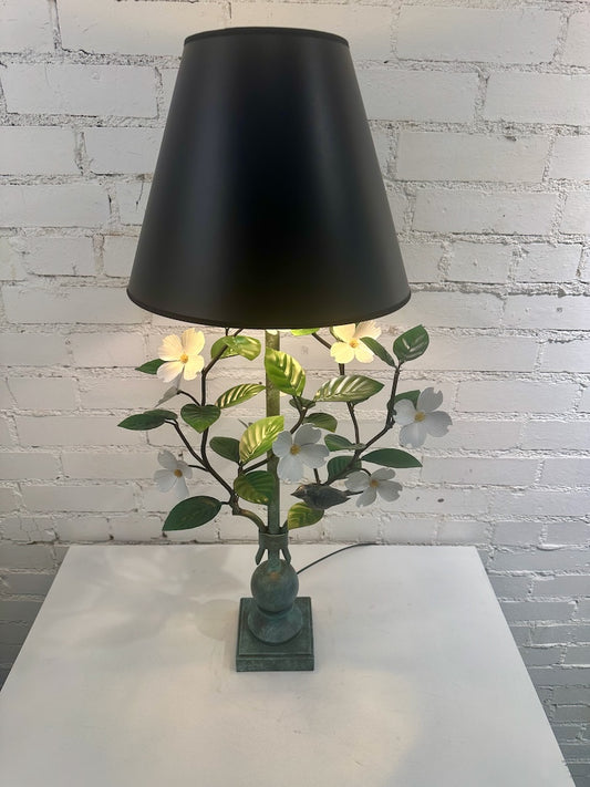WHITE DOGWOOD HAND FORGED LAMP WITH BLACK SHADE