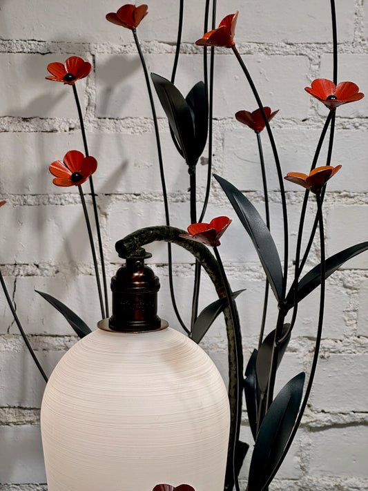 FIELD STUDY LAMP WITH RED BLOOMS AND FROSTED SHADE