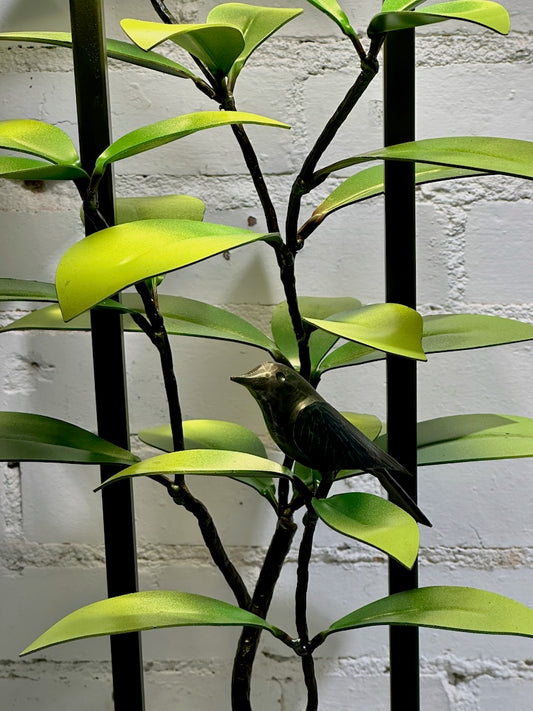 Green Laurel and Wrens Table Lamp with Black Shade