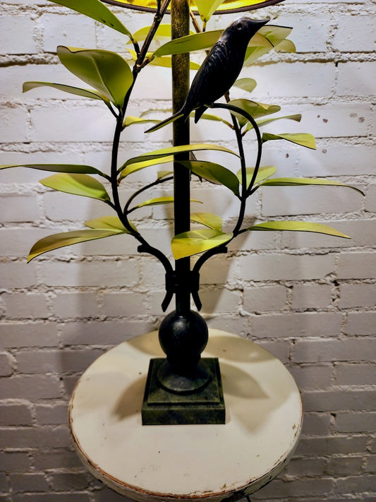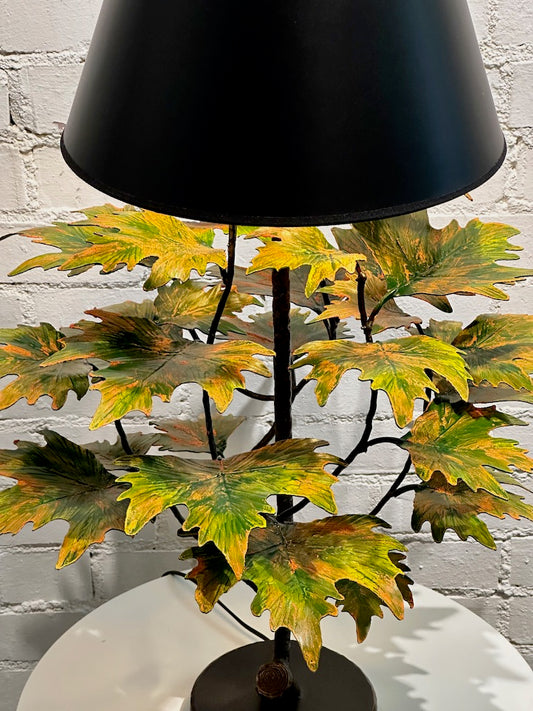 BT. GREEN/ YELLOW LAUREL LEAF LAMP W/ BLACK SHADE