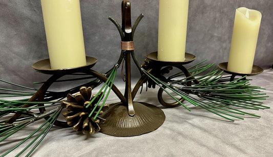 2 CANDLE HAND FORGED PINE CONE CENTERPIECE
