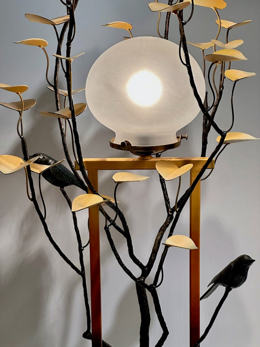 TALL SCULPTURAL MORNING GLORY LAMP WITH FROSTED GLOBE