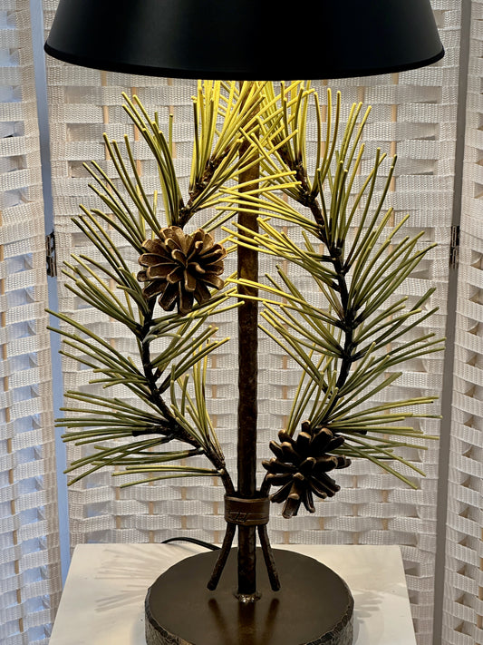 GREEN PINE CONE TABLE LAMP WITH BLACK SHADE