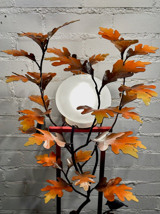 ORANGE/ YELLOW LAUREL LEAF LAMP W/ BLACK SHADE