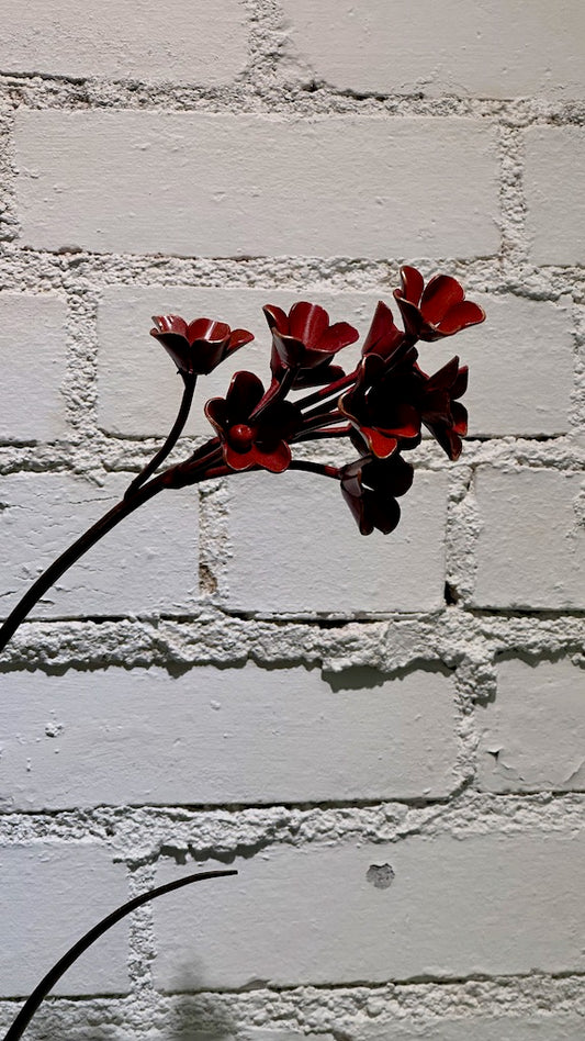 DEEP RED DOGWOOD FIELD STUDY HAND FORGED METAL SCULPTURE