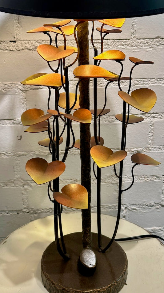 ORANGE GINKO LEAF LAMP W/ BLACK SHADE