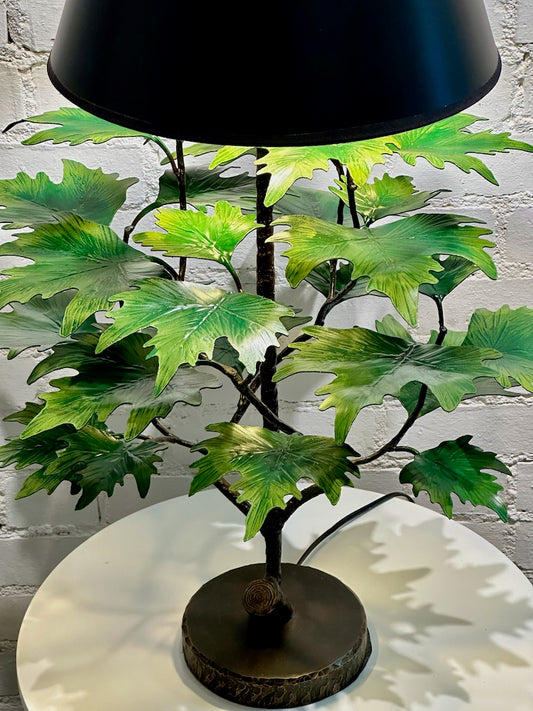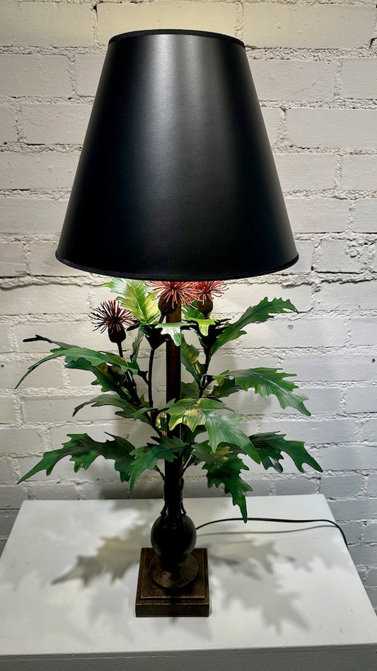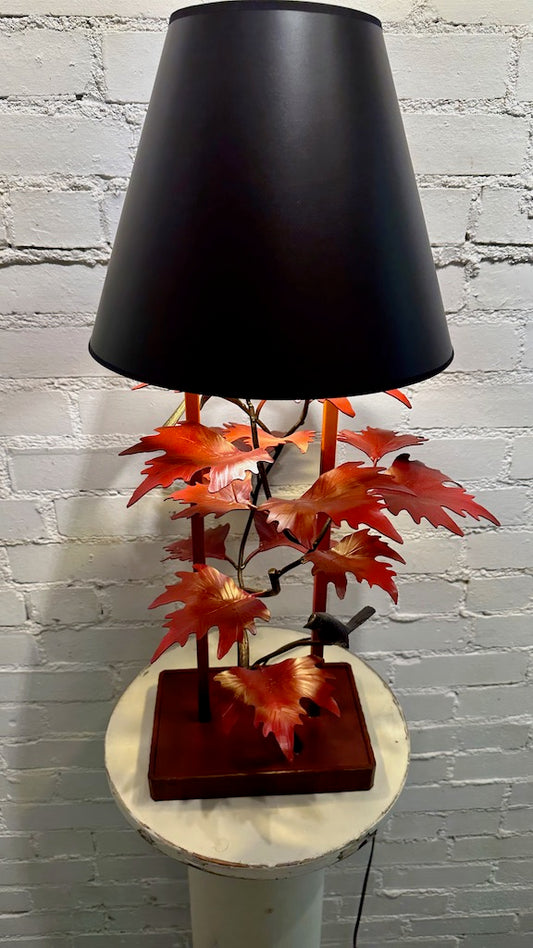 TALL RED GINGKO AND MORNING GLORY HAND FORGED Lamp Table Lamp with Black Shade