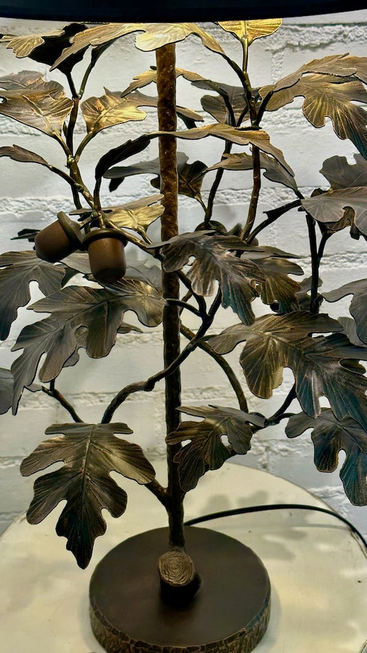 BRONZE OAK AND ACORN LAMP WITH Black Shade