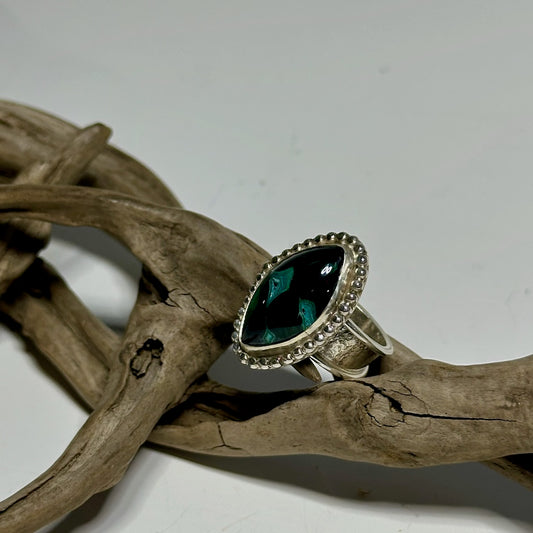 OPALIZED AND STERLING SILVER RING WITH STERLING BALL SURROUND WK91