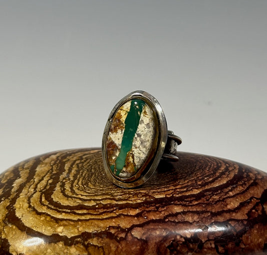 GREEN RIBBON TURQUOISE ADJUSTABLE RING IN NUGOLD AND STERLING WK104