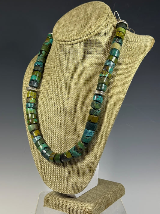 TURQUOISE BEAD NECKLACE WITH SILVER DISCS WK110