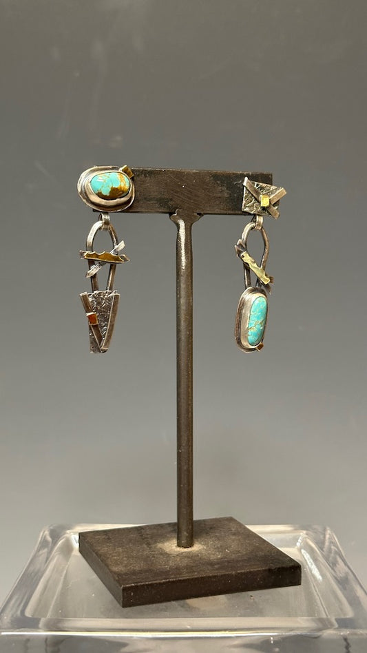 ASYMMETRICAL TURQUOISE STERLING SILVER EARRINGS WITH POSTS WK12