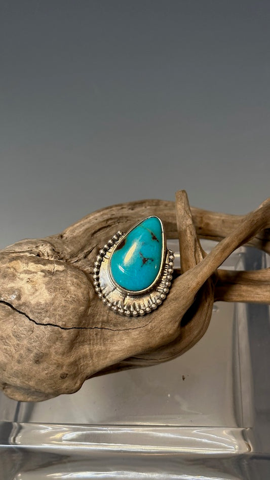 TURQUOISE ADJUSTABLE STERLING SILVER RING WK16