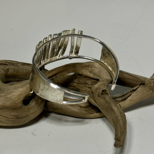STERLING SILVER CUFF WITH MULTI TEXTURED BARS AND AMMOLITE WK84