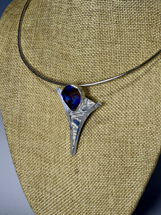 BOULDER OPAL ON FUSED STERLING PENDANT WITH STAINLESS STEEL CHOKER WK88
